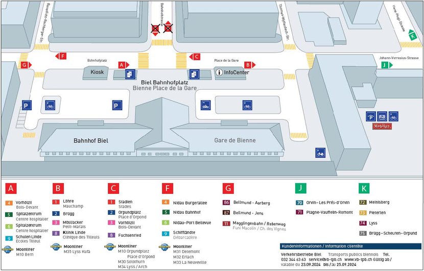 Am Bahnhof Biel werden einige Haltestellen verschoben. Bitte beachten Sie den Perronplan.